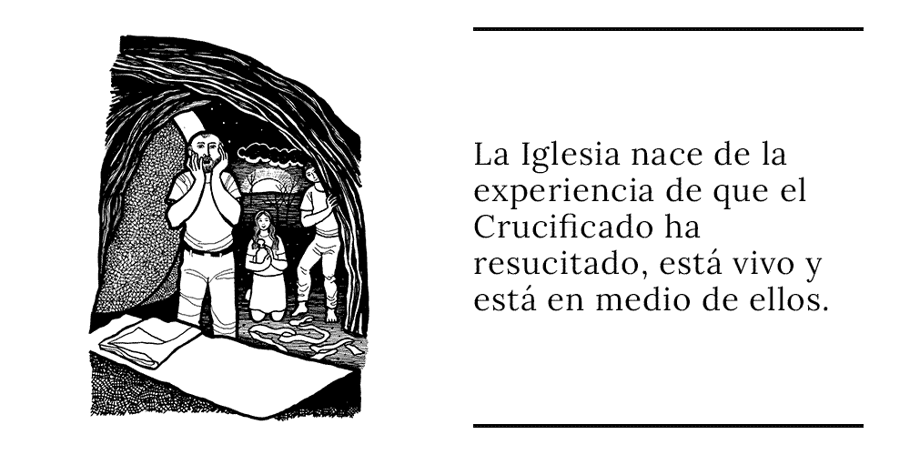 RESPUESTA: La Iglesia nace de la experiencia de que el Crucificado ha resucitado, está vivo y está en medio de ellos. Además, se les muestra y se les aparece. El tiempo que media entre la Resurrección y la Ascensión es tiempo eclesial, es tiempo de los comienzos de la Iglesia como testigo del Resucitado.