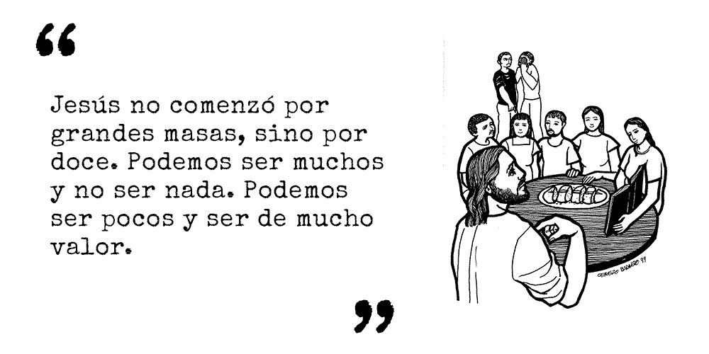 RESPUESTA: Jesús no comenzó por grandes masas, sino por doce. Podemos ser muchos y no ser nada. Podemos ser pocos y ser de mucho valor. El Evangelio es para todos, pero no se mide por la cantidad sino por la calidad. La Iglesia comenzó por ser un pequeño grupo, pero éste capaz de fermentar al mundo entero.