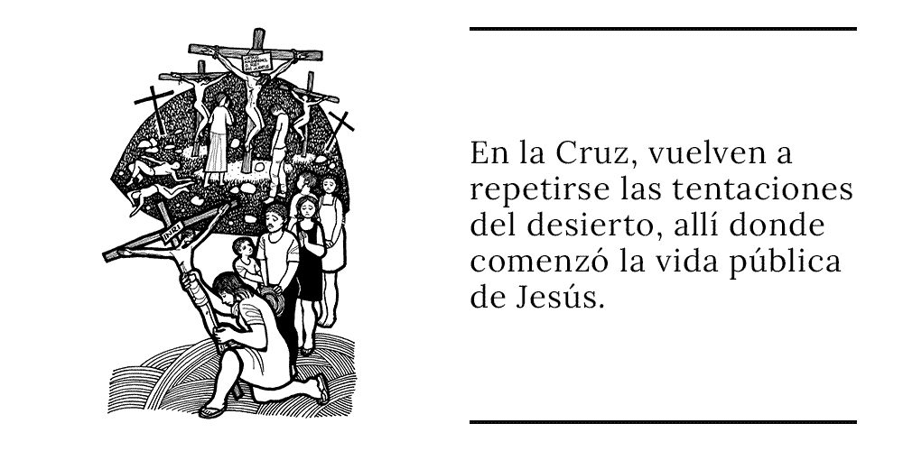 RESPUESTA: Tenemos dos momentos. Uno en el juicio religioso, en el que deciden condenarle cuando Él se ratifica como Hijo de Dios y afirma su identidad aun sabiendo que le costaría la vida. Luego en la Cruz, vuelven a repetirse las tentaciones del desierto, allí donde comenzó la vida pública de Jesús.